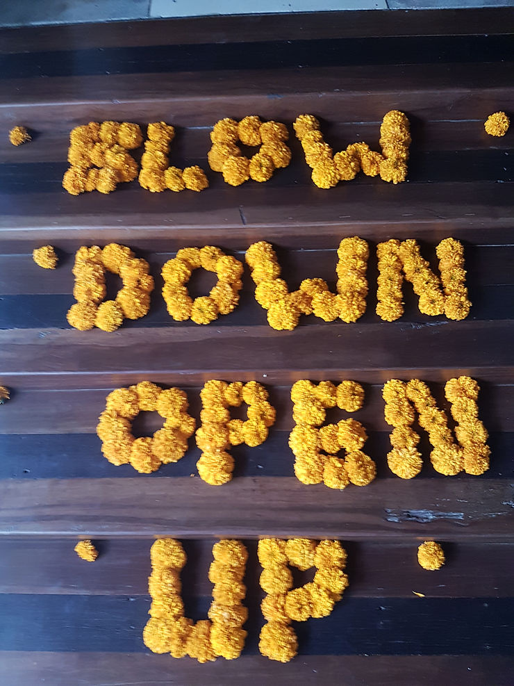 As I reflect on the past 4 days spent in silent meditation, I feel a deep sense of peace in myself. In my place in my body, with perfect timing and placement. I remind myself of the experience of impermanence, in the field of mind and matter, the one we reside in most days. It is so clear that it is my own attachments that leads to the suffering and that I am the chief cause and liberator of my own suffering with my awareness and reactivities. A lifetime, how many life times, or programmed responses to what it based on what was, what isn’t. Each day I practice sitting with these responses, digging a little deeper into their whereabouts, and letting go, always letting go.