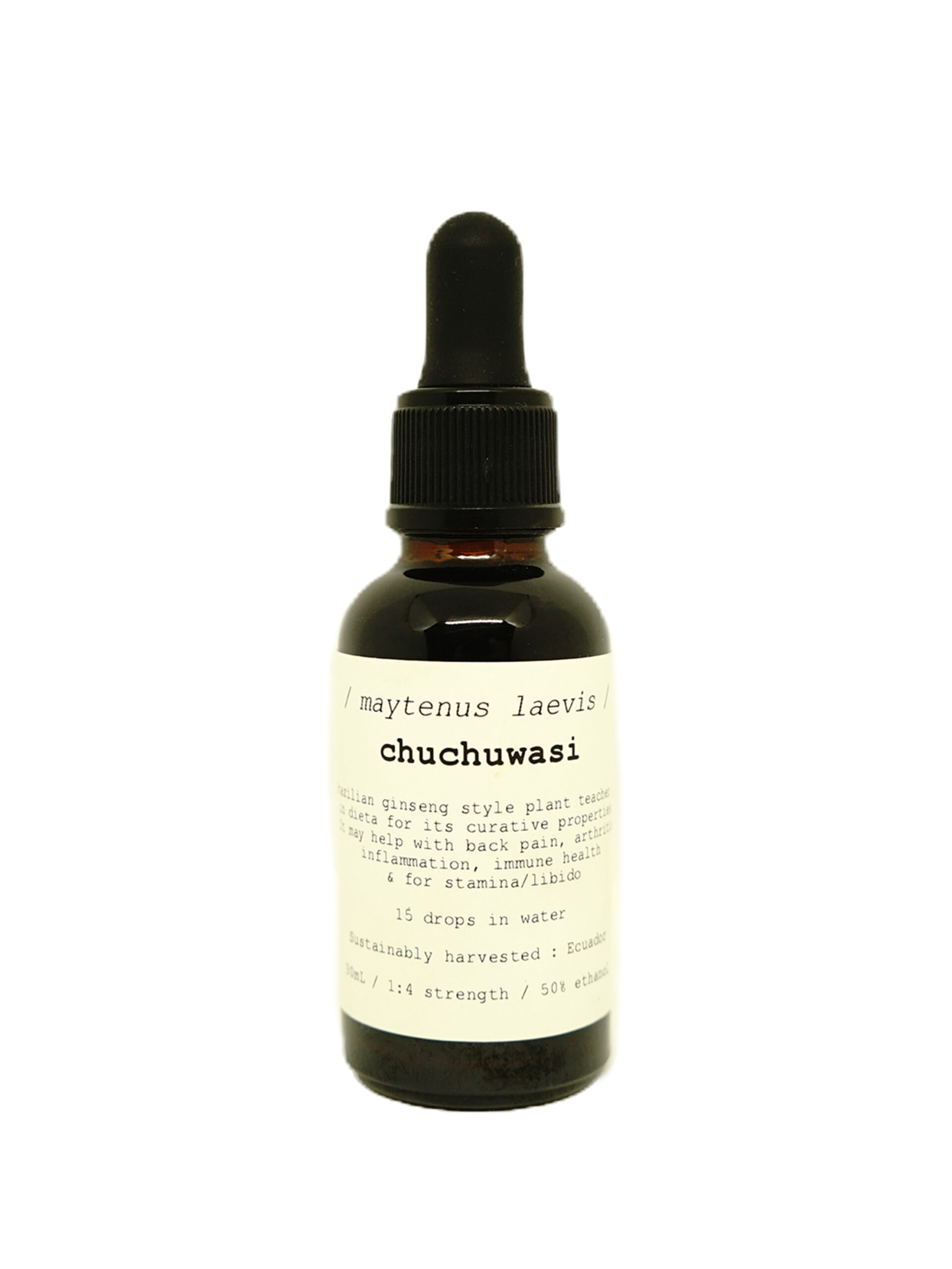 Chuchuwasi is the plant Maytenus macrocarpa from the Amazon rain forest. It is used there as an adaptogenic plant that primarily relieves inflammation and relaxes muscles.