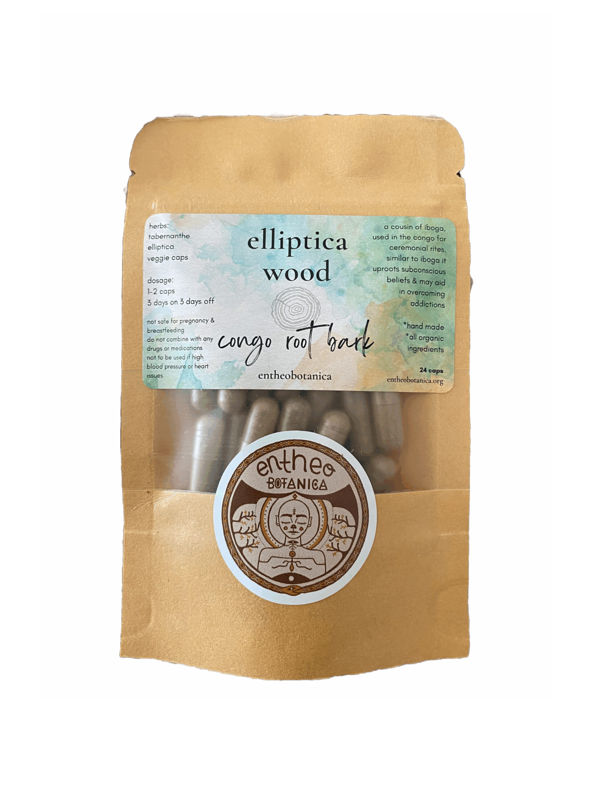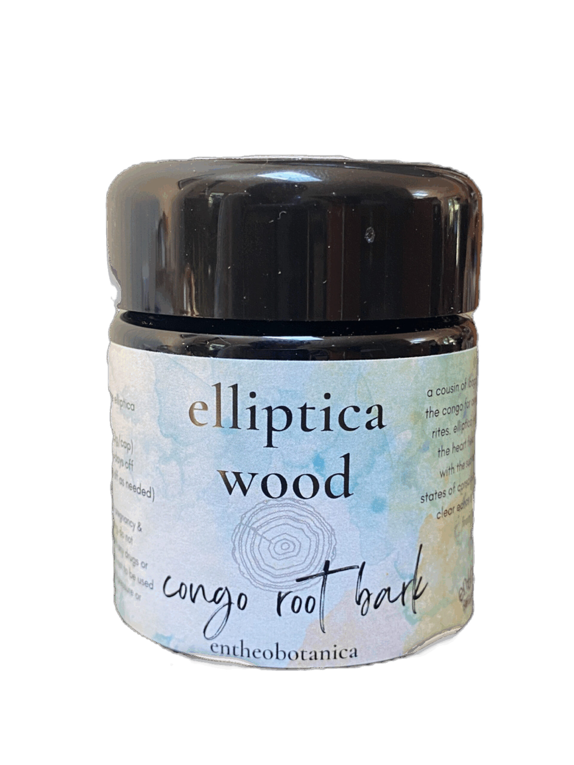 Though it may appear more gentle than eboga at first, Elliptica is not necessarily suited for beginners as it works with refining one’s consciousness. It works best for those who have already built a relationship with the Wood and are prepared for a more nuanced and uplifting experience. It can also be ideal used as a preparatory plant pre-wood to cleanse the mind, soften the ego, and clear the echoes of stored memories — making space for stronger, louder plant spirits like the voice of Eboga to move through more freely.