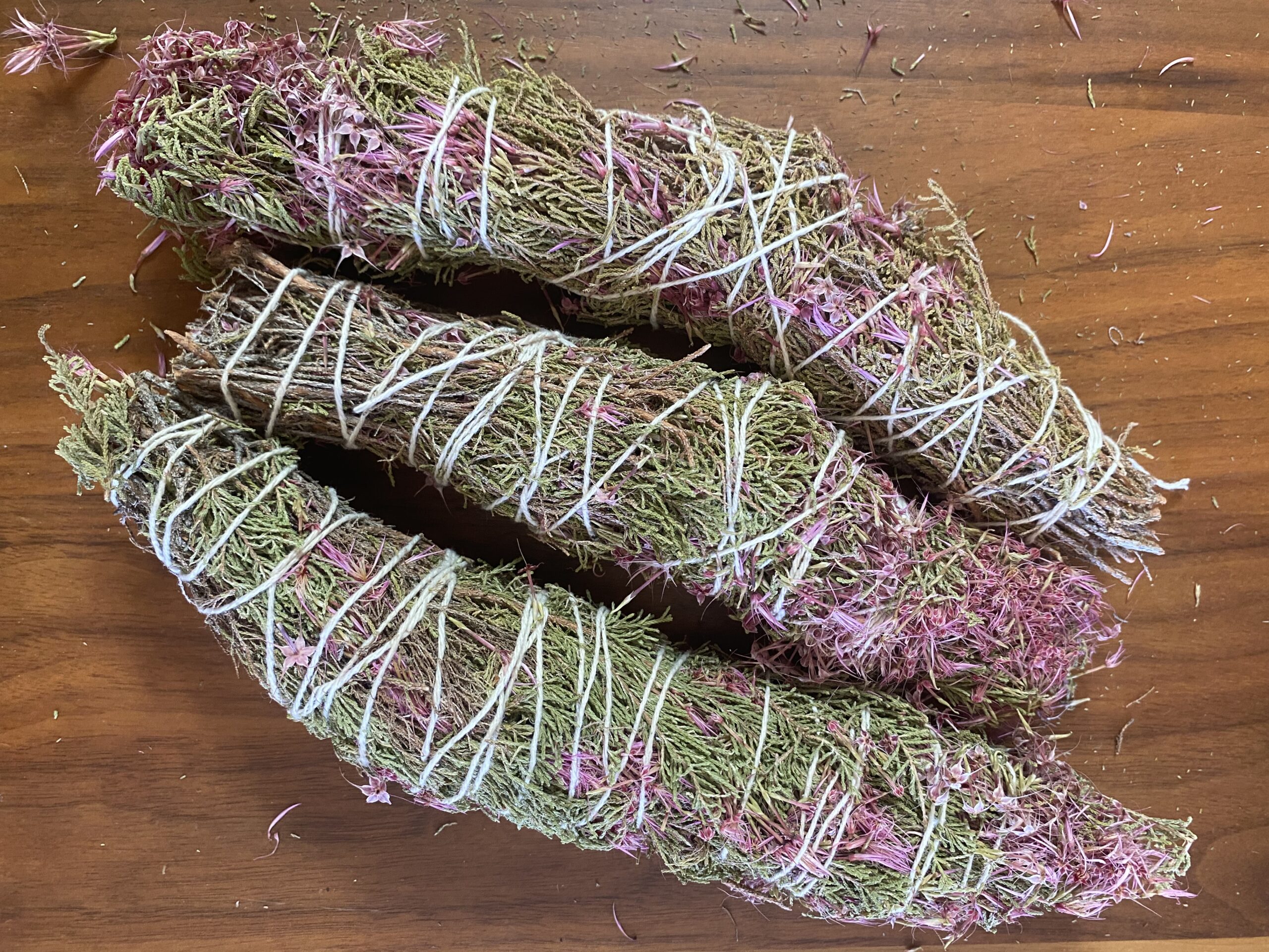 This smudge stick carries a subtle floral scent and a gentle strength — an ally for purifying the space, helping to keep bugs away, or calling in clarity after illness or disconnection.